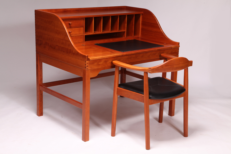 - Free-standing solid cherry wood writing desk and chair by Andreas Hansen