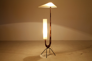 フランスで活躍した照明デザイナー「ジャン・リスパル」の名作「Giraffe floor lamp」は、1950年代に誕生しました。ユニークな形状は、その名の通り”キリン”からインスピレーションを得ています。落ち着いた色合いが美しいウォルナット材にコードが編み込まれ、意匠の役目を担います。特徴ある2つのシェードから優しく照らされる極上の光は、贅美を尽くしたひとときを提供します。(個別点灯可)リスパルの圧倒的世界観を堪能できる傑作です。在庫確認・送料に関しましてはinfo@swankysystems.jp までお気軽にお問い合わせください。